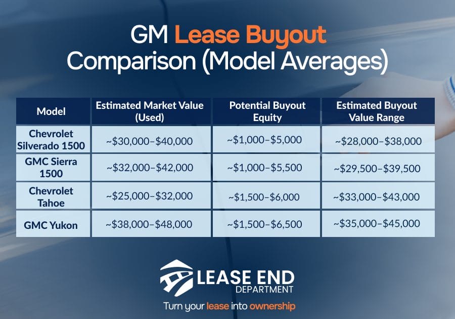 Most drivers forget to budget for taxes and title, which can add $2,000+ to your final buyout amount, especially on large GM vehicles like the Tahoe, Sierra, or Suburban.