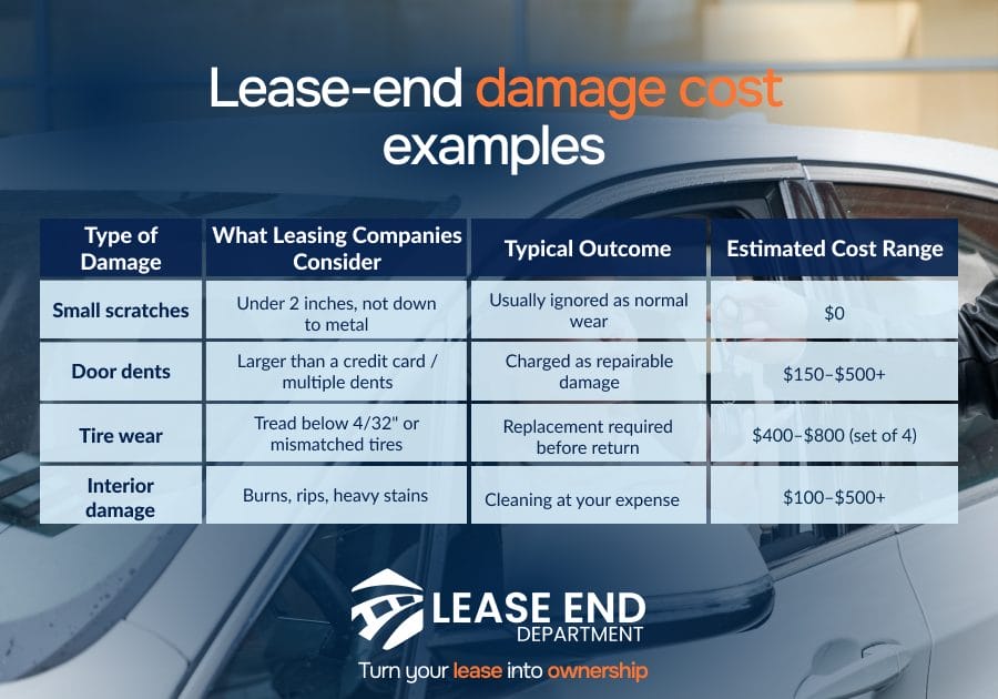 If the inspector flags something as damage (and not just wear), you’ll likely be charged for it, unless you repair it beforehand or opt for a lease buyout. The good news? You’ve got options, and we’ll walk you through all of them.